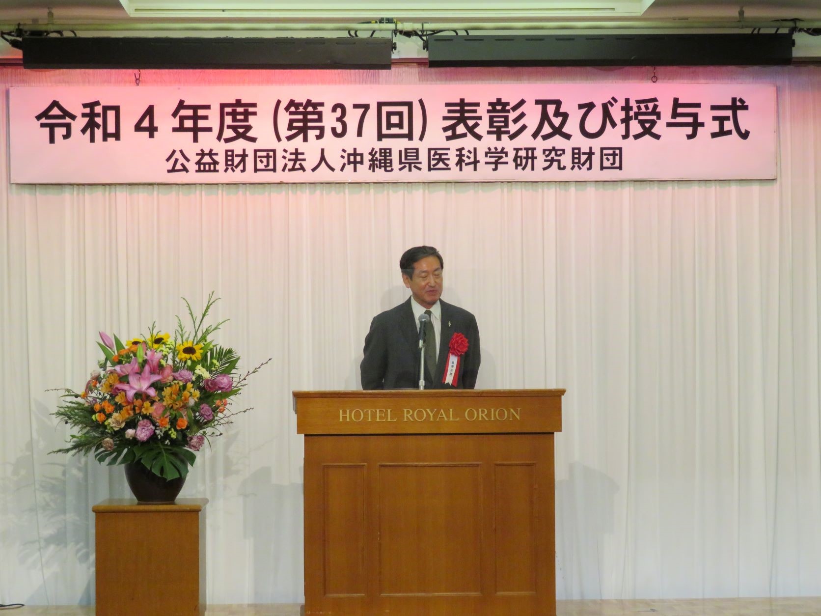 当グループ特別顧問の藤田次郎先生が、令和4年度「公益財団法人沖縄県医科学研究財団」功労賞を受賞しました。その表彰及び授与式が2月17日に開催されました。