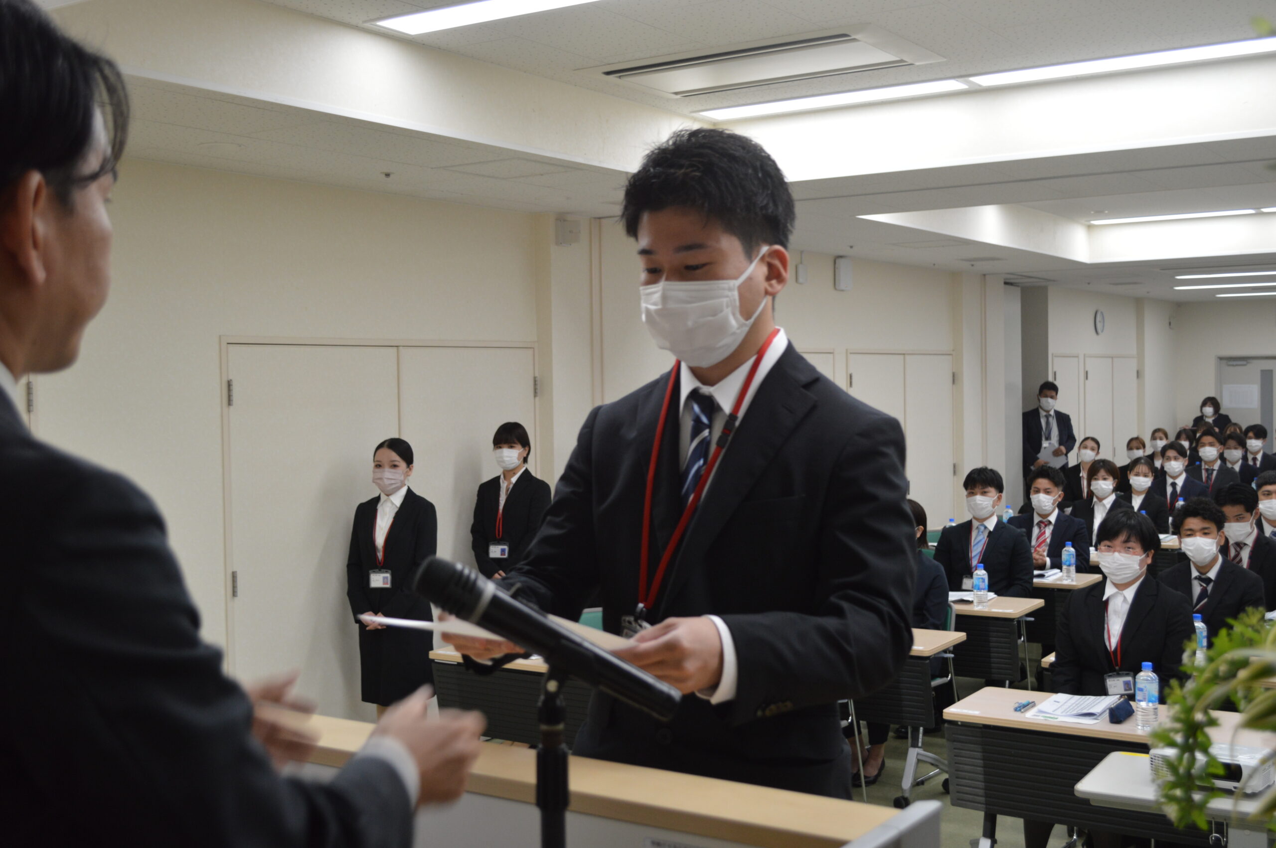 辞令を受け取る際、緊張しながらも真剣な眼差しが印象的でした。