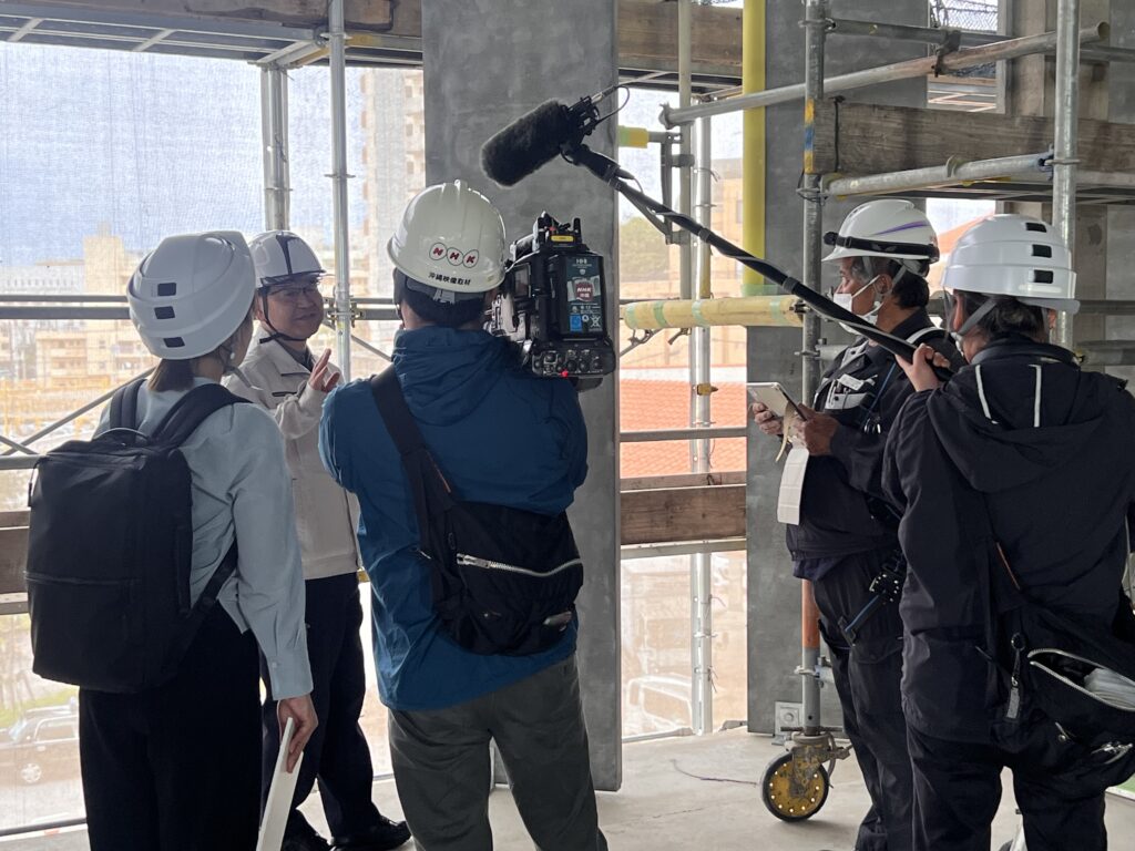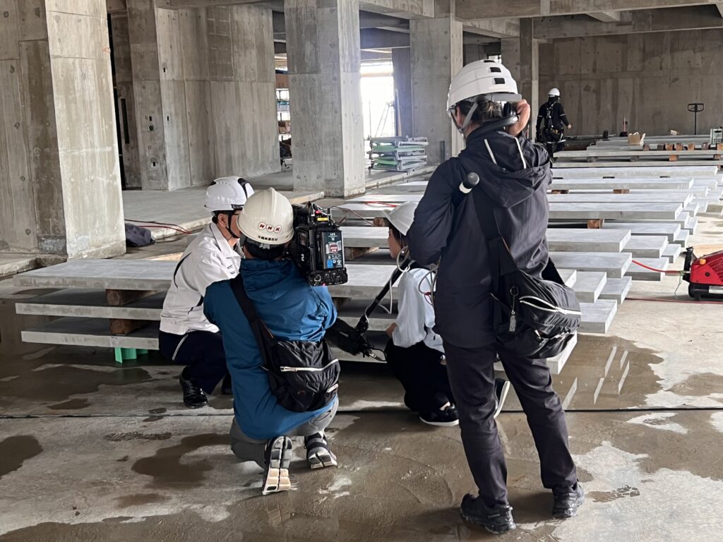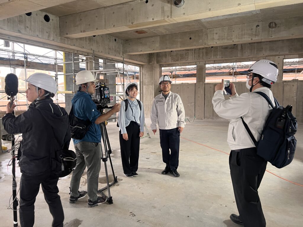当日は、建設中の現場で取材クルーによる撮影が行われ、インタビューや工事の様子などが記録されました。