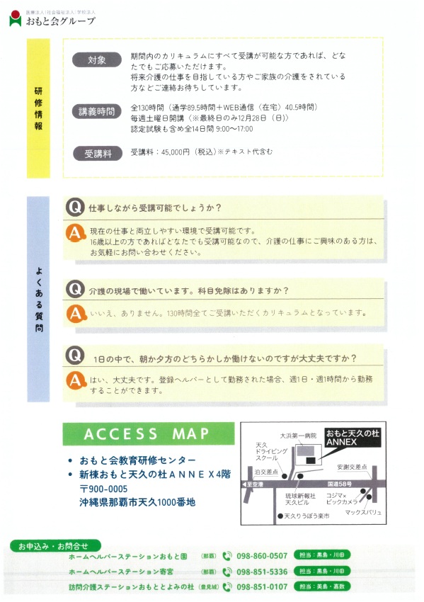 おもと会介護職員初任者研修の受講生募集について(公開情報含む)