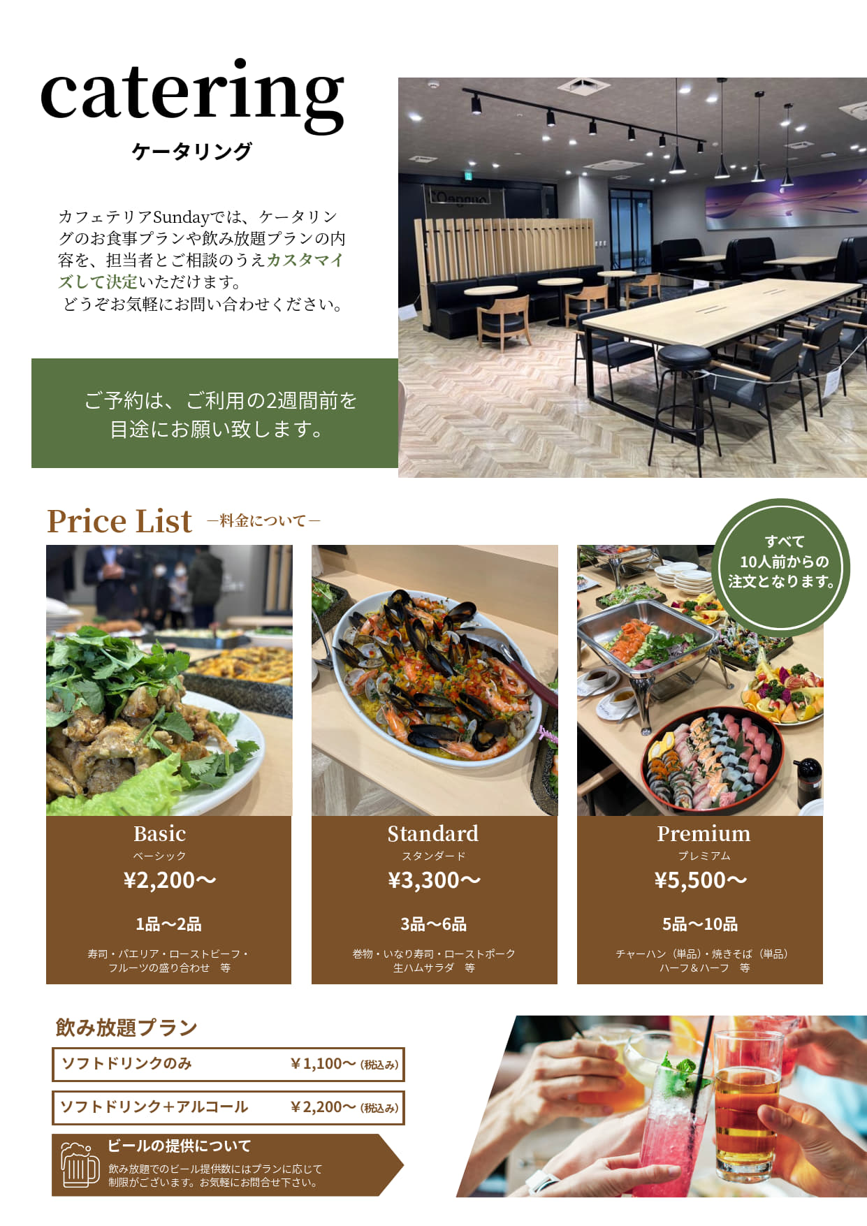 併設のLOUNGE O2では、カフェテリア・サンデーと連携し、お弁当やケータリング、お飲み物の手配も承っております。