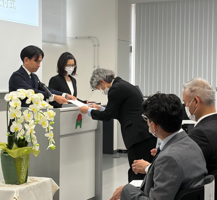 2026年4月1日、天久の杜新棟講堂 AuditiriumOにて「おもと会幹部事例交付式・新入職員辞令交付式」が行われました。