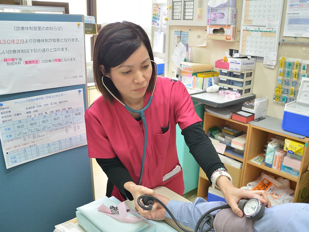 訪問診療とは、退院後や在宅生活において通院が困難な患者様に対し、ご自宅(高齢者専用住宅等を含む)へ計画的に訪問し、医師が診療を行うものです。急変時には、おもと会グループの母体である大浜第一病院をはじめ、近隣の救急医療機関と連携し、迅速に対応します。