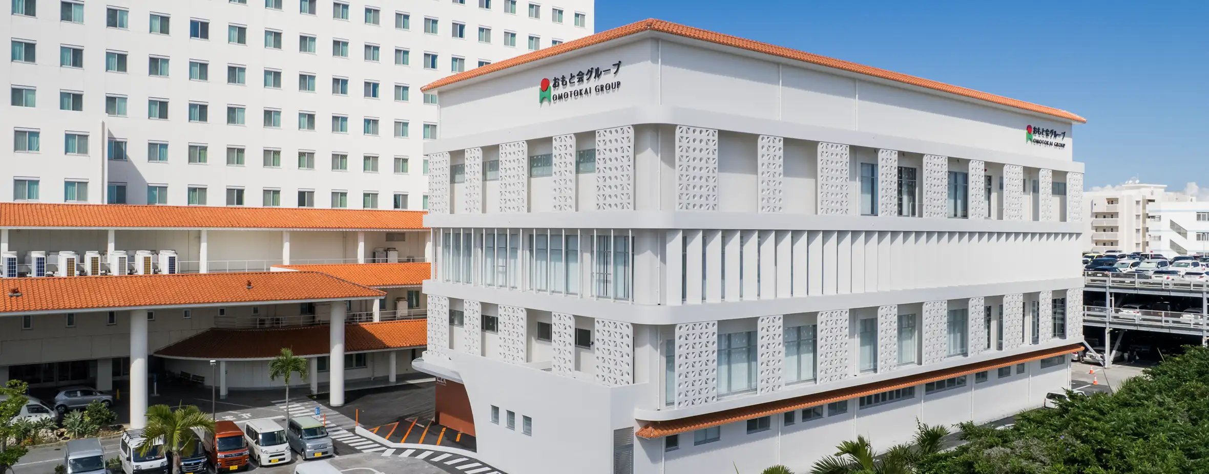 在宅総合ケアセンターなはは、那覇市安里に事業所を構える、ホームヘルパーステーションおもと園、訪問看護ステーションおもと園、訪問入浴サービスセンターおもと園、デイサービスセンターおもと園、居宅介護支援事業所おもと園、那覇市地域包括支援センターの6事業所からなるセンターです。
