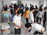 体力トレーニングの実技では、サーキットトレーニングとしてストレッチ・踏み台昇降・30秒立ち上がり・壁立て伏せ・タオルギャザーといういくつかの運動を組み合わせたトレーニングの紹介を行いました。各ブースに分かれてそれぞれ体験していただきました。その中で色々な質問もあり色々興味を持って取り組んでいただけたと思います。道具を使わなくても、スピードや重力の影響を用いることと工夫次第で運動をいろいろと応用できることもわかっていただけたら幸いです。 |