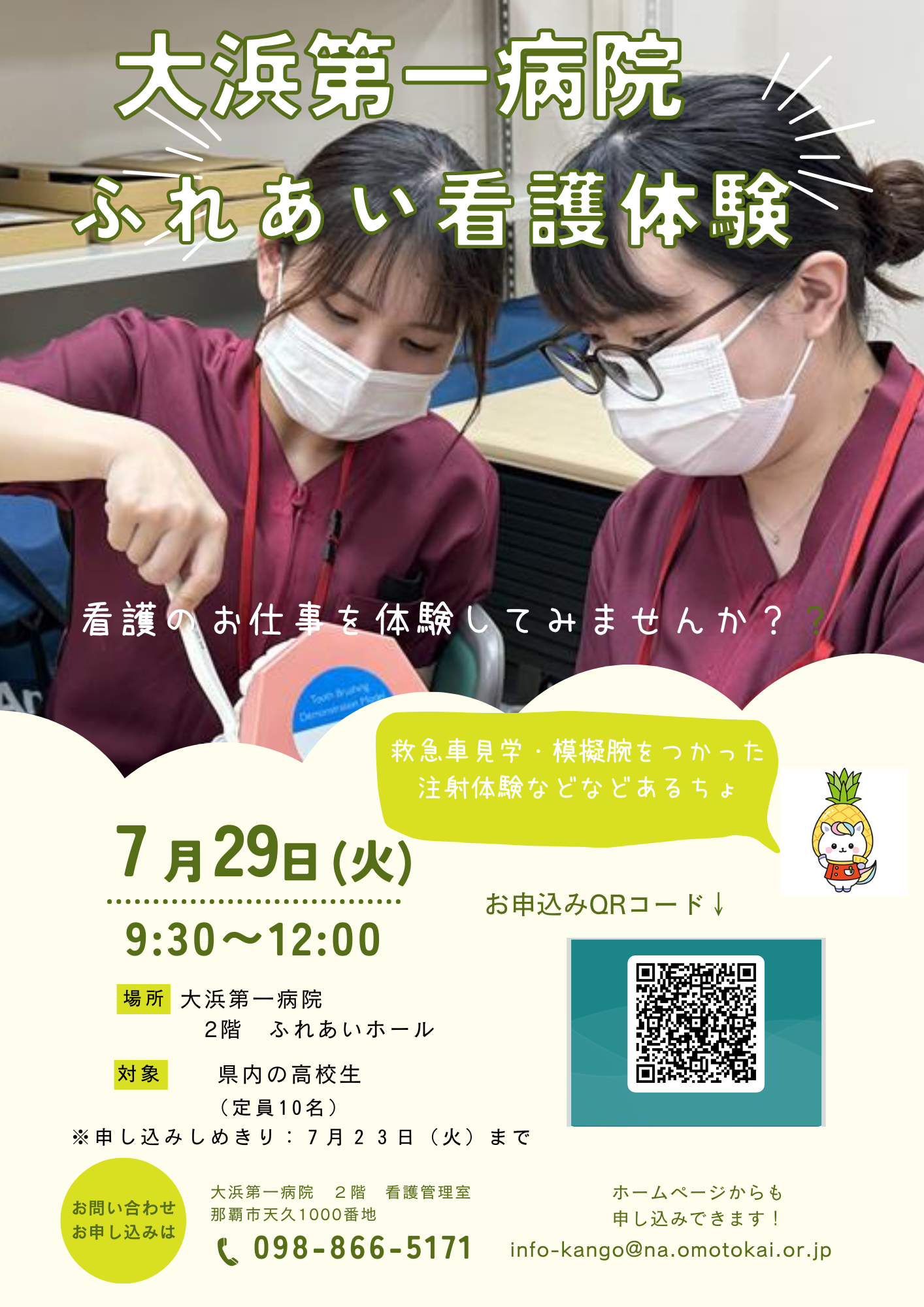 「将来看護師を目指したい」「看護師の仕事を知りたい」という高校生を対象に、今年も「ふれあい 看護体験」を開催いたします