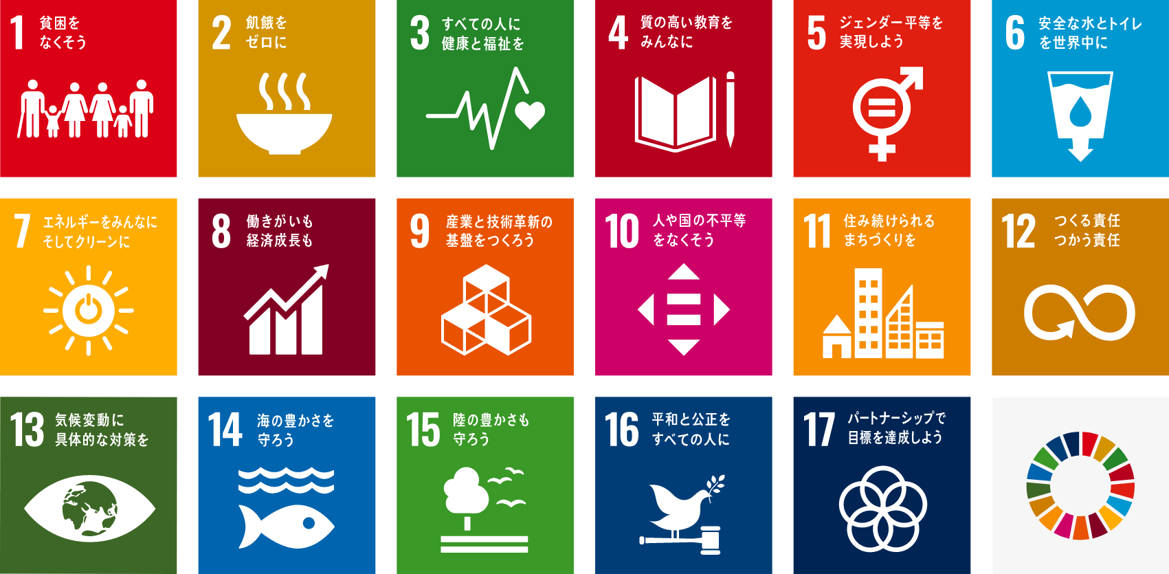2015年9 月の国連サミットで、150 を超える加盟国首脳の参加のもと、全会一致で採択された「持続可能な開発のための2030 アジェンダ」に記載され、2030 年までに、持続可能でよりよい世界を目指す、国際目標のことをいいます。