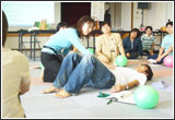 ◯「尿失禁予防教室」は市町村で行う介護予防事業メニューの一つに挙げられているが、どのように実践したらよいのか?東京で「尿失禁予防教室」を実践している田舎中真由美先生を招き、そのノウハウを学習した。 |
