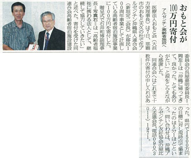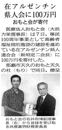 アルゼンチン高齢者宿泊施設建設事業へ寄付を行いました。